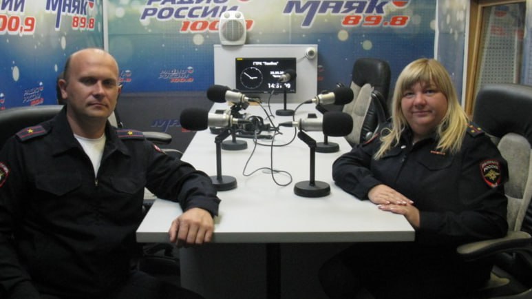 У микрофона начальник отделения Госавтоинспекции ОМВД «Инжавинский» Зверев Сергей и Просандеева Лариса инспектор по пропаганде УГИБДД УМВД России по Тамбовской области