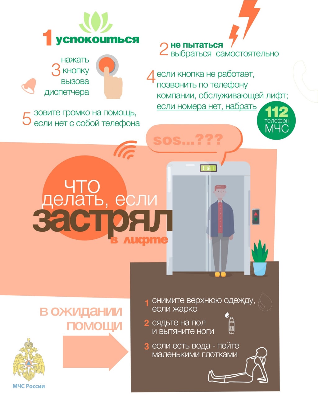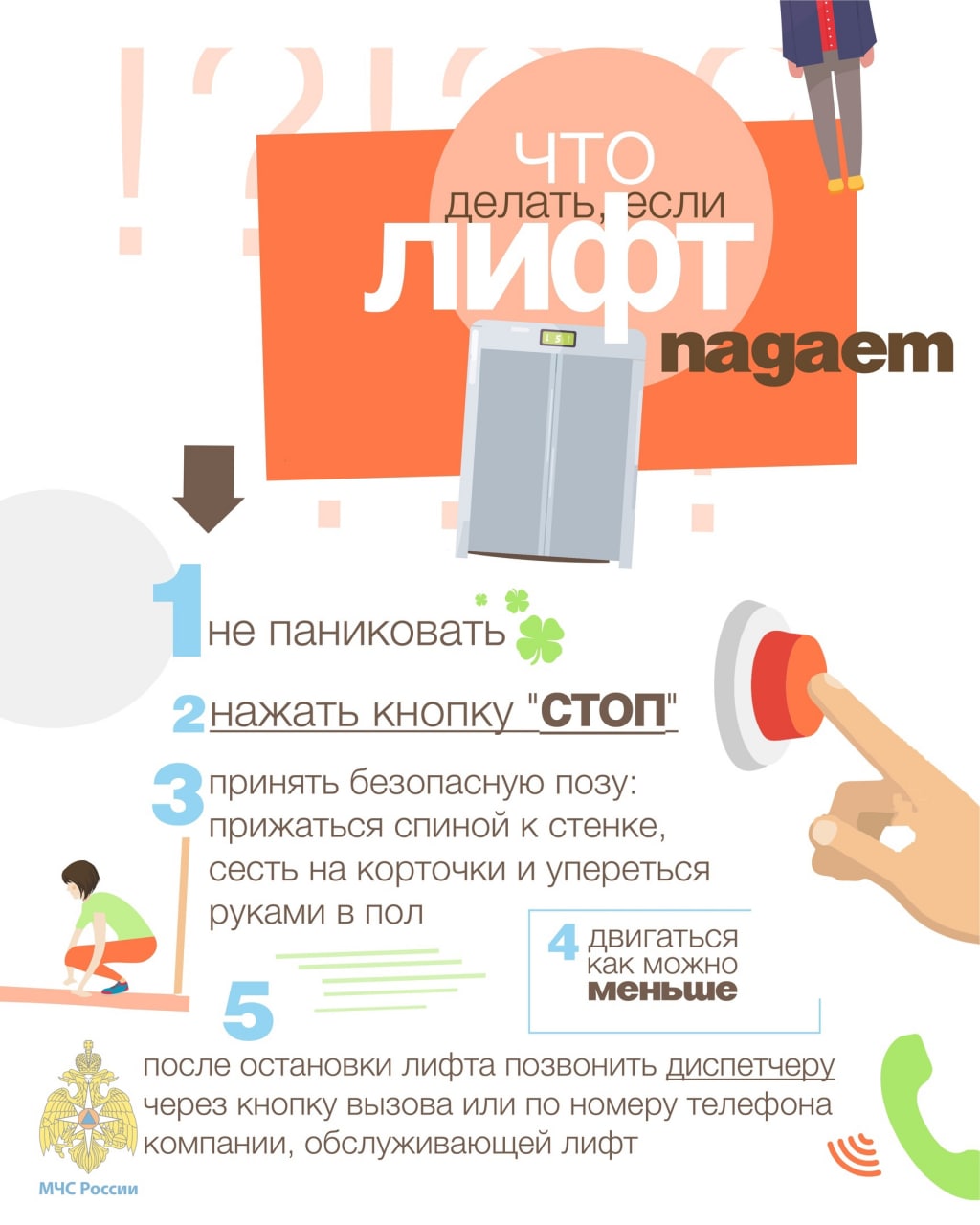МЧС России подготовлены памятки о порядке действий в лифте в критической ситуации.