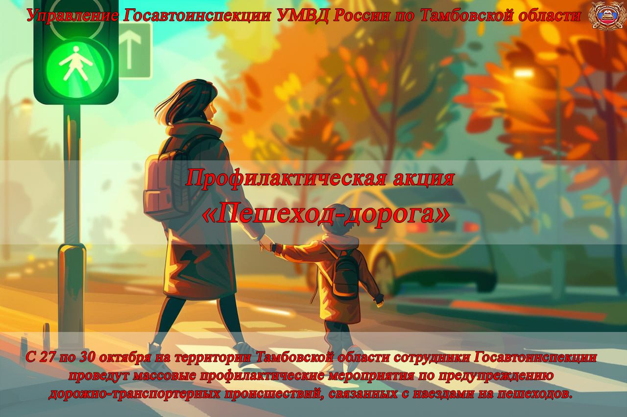 С 27 по 30 октября на территории Тамбовской области сотрудники Госавтоинспекции проведут массовые профилактические мероприятия по предупреждению дорожно-транспортерных происшествий, связанных с наездами на пешеходов