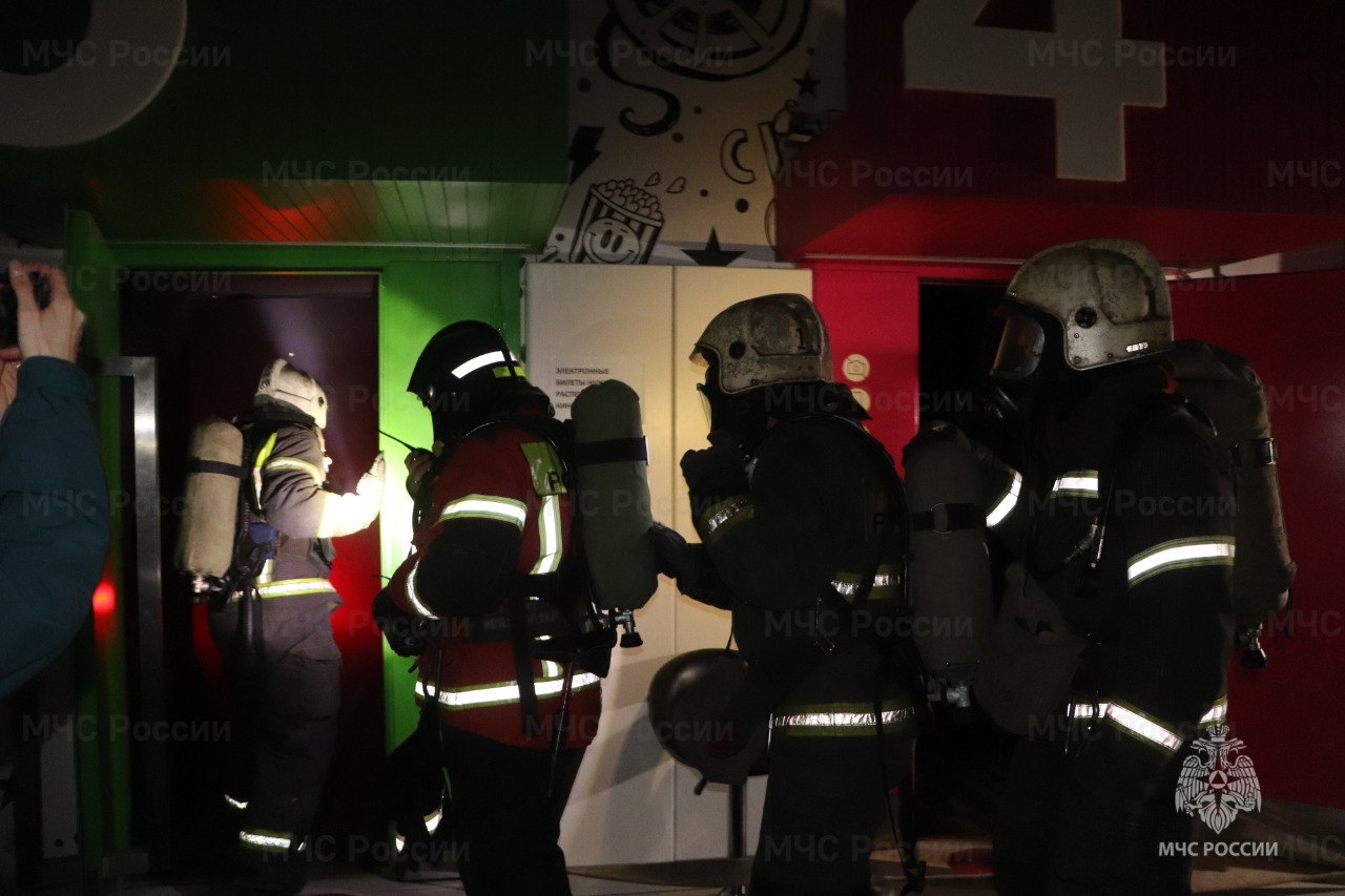 На место пожара незамедлительно были направлены пожарно-спасательные подразделения Тамбовского гарнизона, до их прибытия была организована эвакуация персонала силами администрации торгового центра. По вводной огнеборцам необходимо было найти 6 посетителей кинотеатра, которые не смогли самостоятельно покинуть здание.