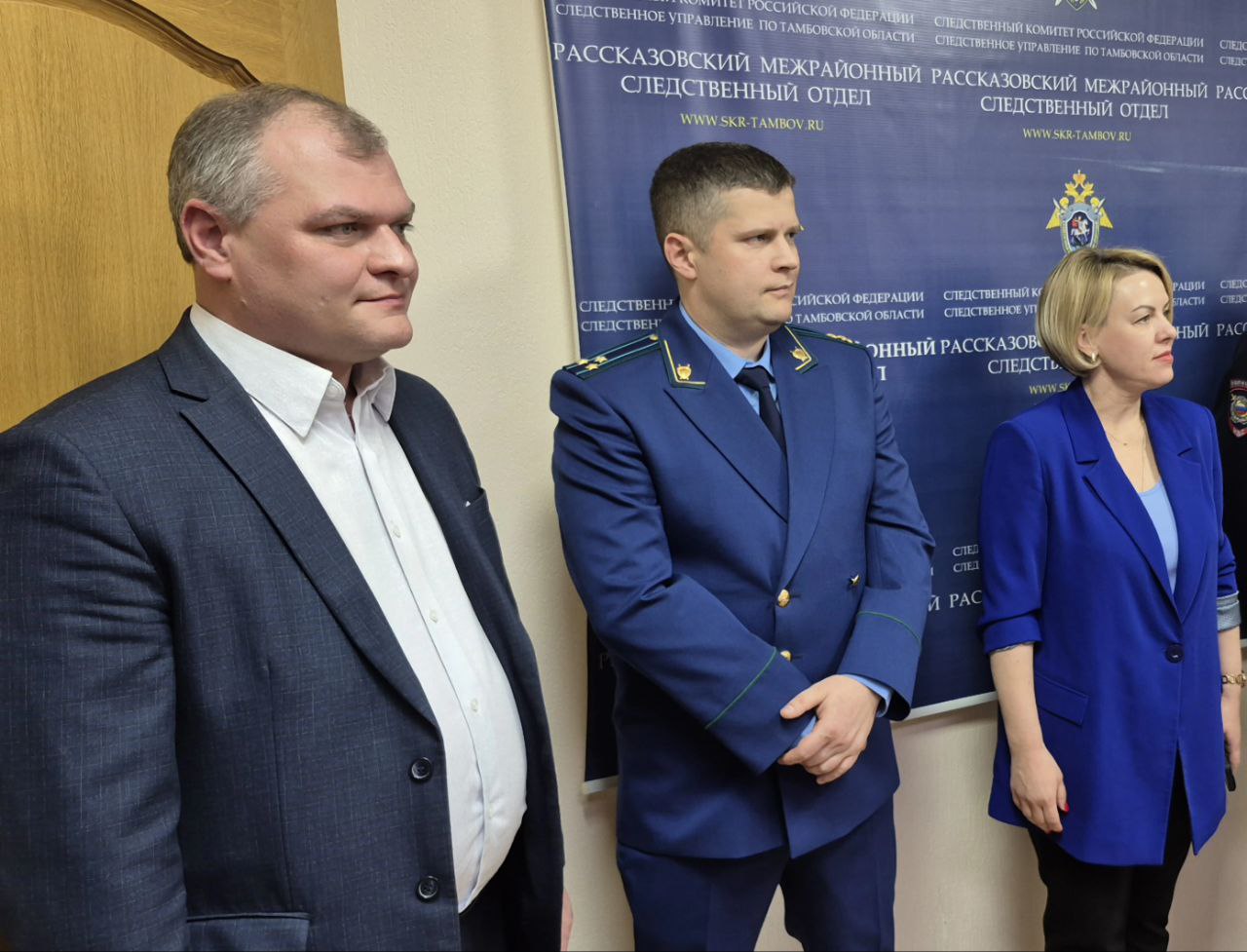 Сегодня нового руководителя коллективу отдела, руководству города Рассказово, межрайонной прокуратуры, районного суда и правоохранительного блока представил исполняющий обязанности руководителя следственного управления Следственного комитета Российской Федерации по Тамбовской области Чапанов А.Н.