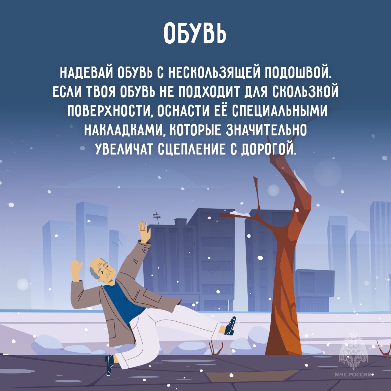 Каждый день возникает вероятность образования наледи. Обезопась себя, изучи полезные карточки от МЧС России в гололед.