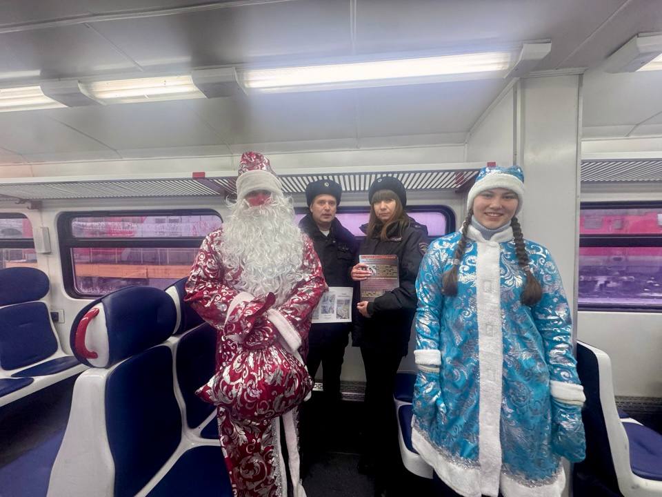 В Тамбове сотрудники транспортной полиции вместе с Дедом Морозом и Снегурочкой провели рейдовые мероприятия