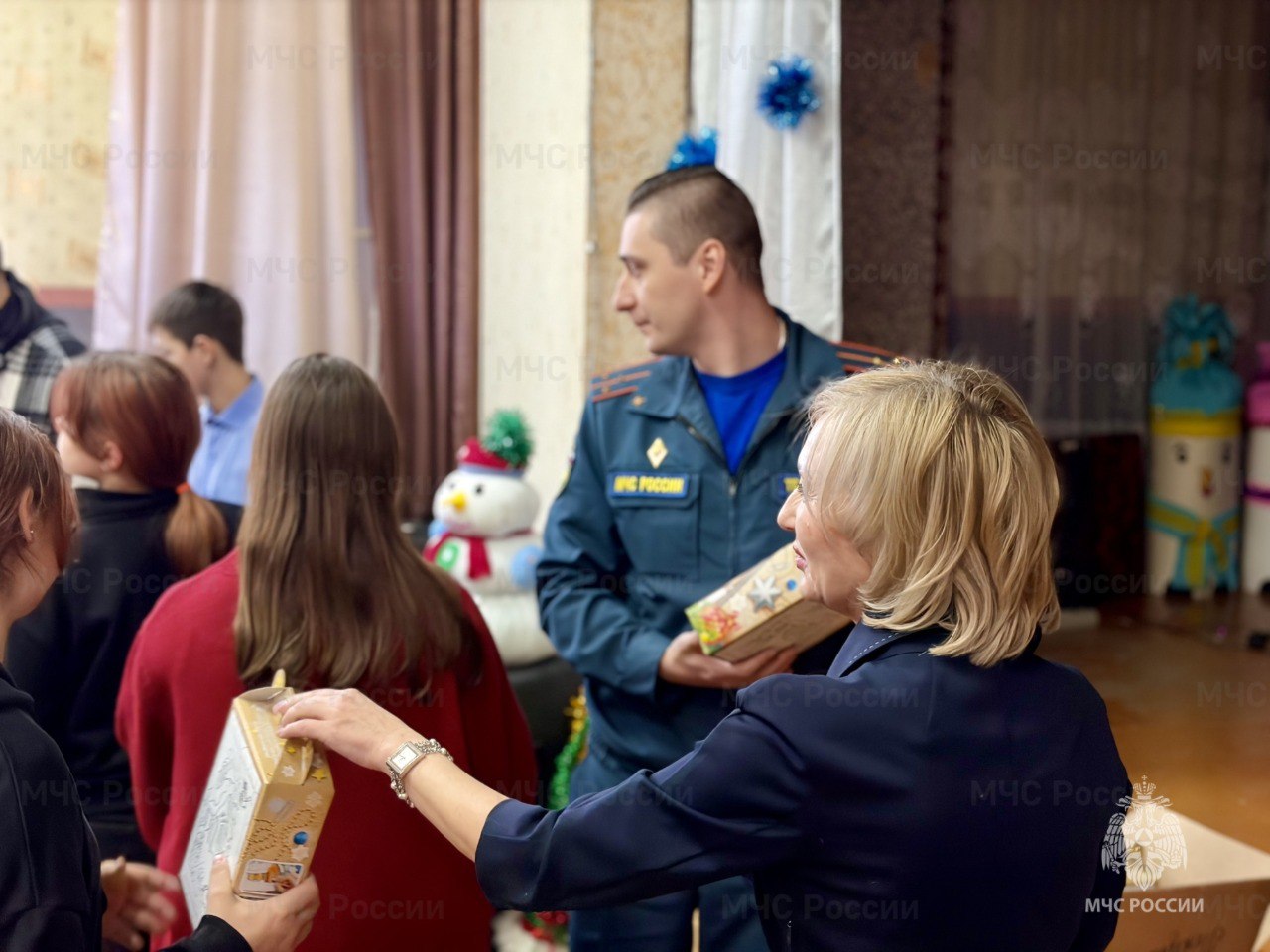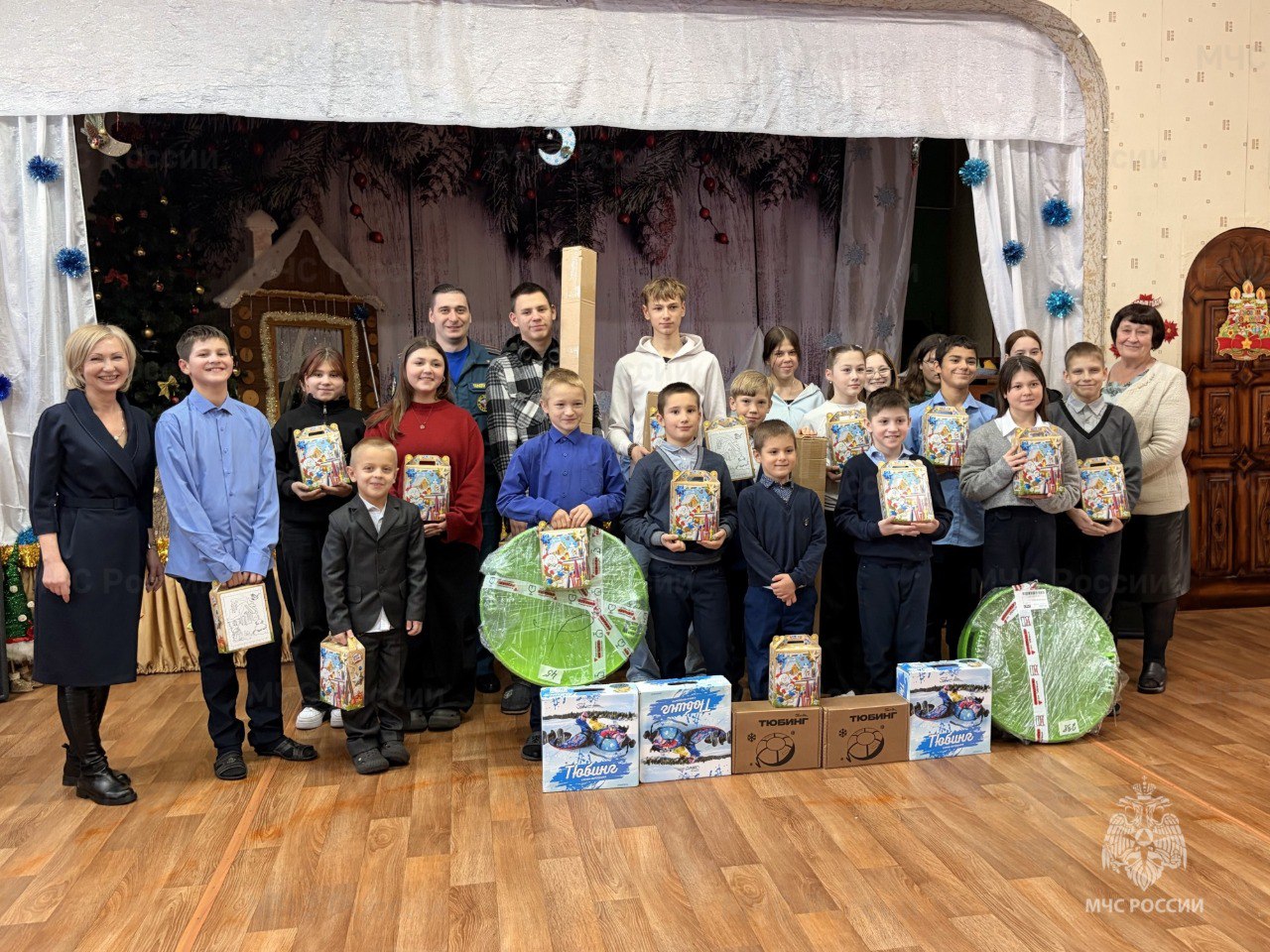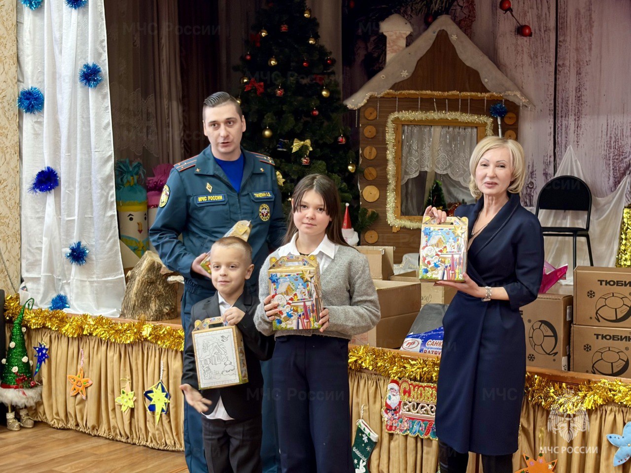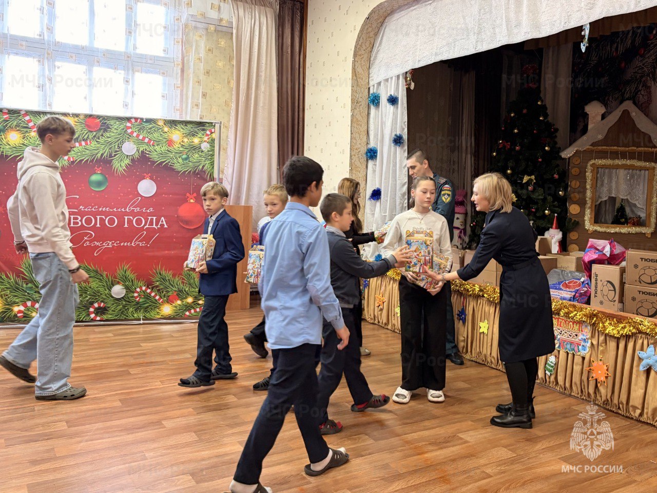 В этом году сотрудники МЧС России подготовили для ребят интересные новогодние подарки. Дети тепло пообщались с сотрудниками Главного управления, сказав им немало слов благодарности. Спасатели поздравили ребят с наступающим новым 2026 годом, пожелали исполнения желаний, загаданных в новогоднюю ночь.