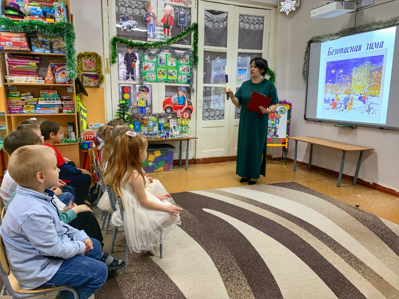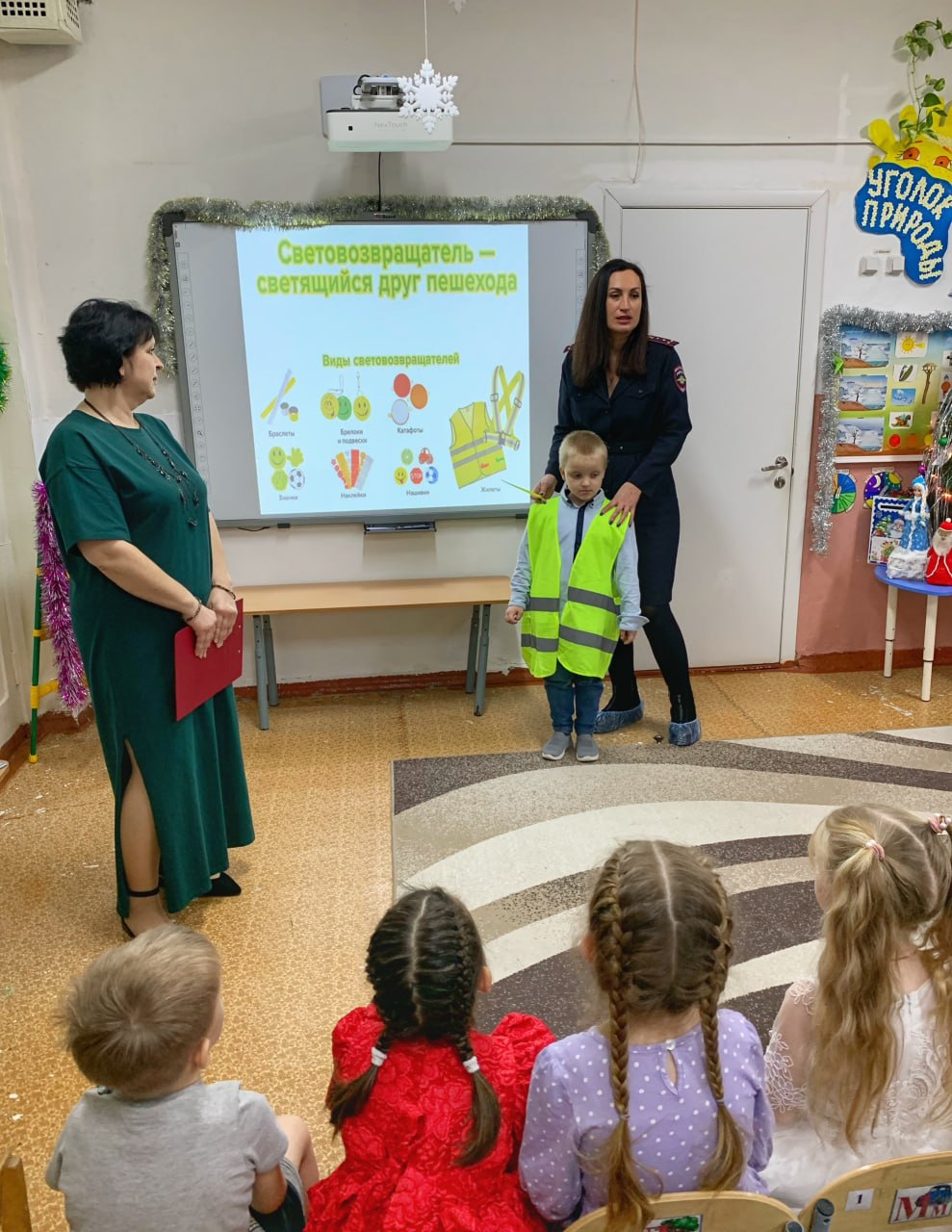 В преддверии зимних каникул воспитатели детского сада Радуга села Новоникольское Мичуринского округа и сотрудница Госавтоинспекции напомнили дошколятам о безопасности на дороге в зимний период.