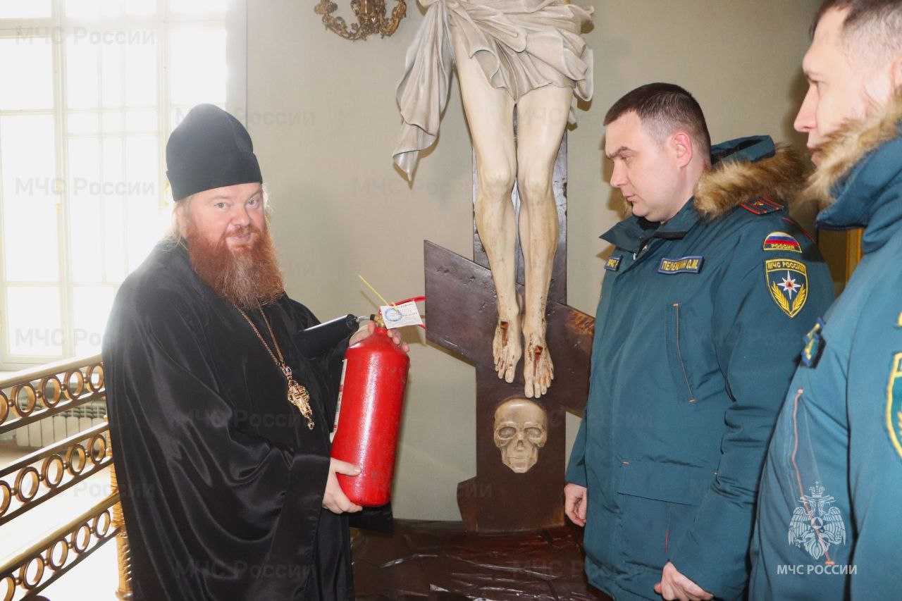 Сотрудники Главного управления МЧС России по Тамбовской области накануне празднования Рождества Христова проводят профилактические мероприятия в храмах, церквях и монастырях. При этом особое внимание уделяется наличию путей эвакуации и эвакуационных выходов, чтобы они были свободны в случае возникновения экстренной ситуации.