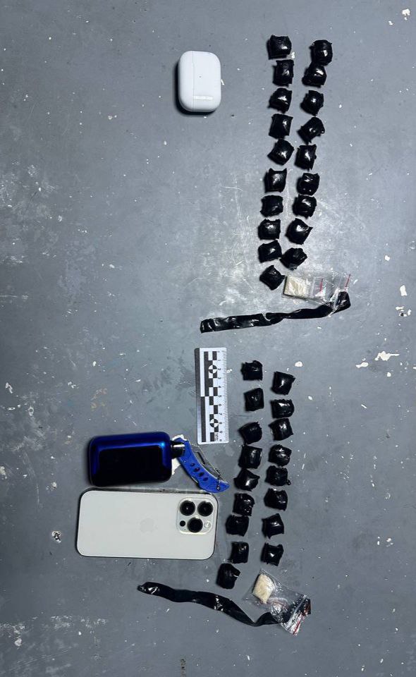 При изучении галереи телефона второго задержанного полицейские установили координаты оборудованных сообщниками тайников на участке вдоль железной дороги и изъяли 26 пакетиков с аналогичным синтетическим наркотиком весом порядка 12 граммов.