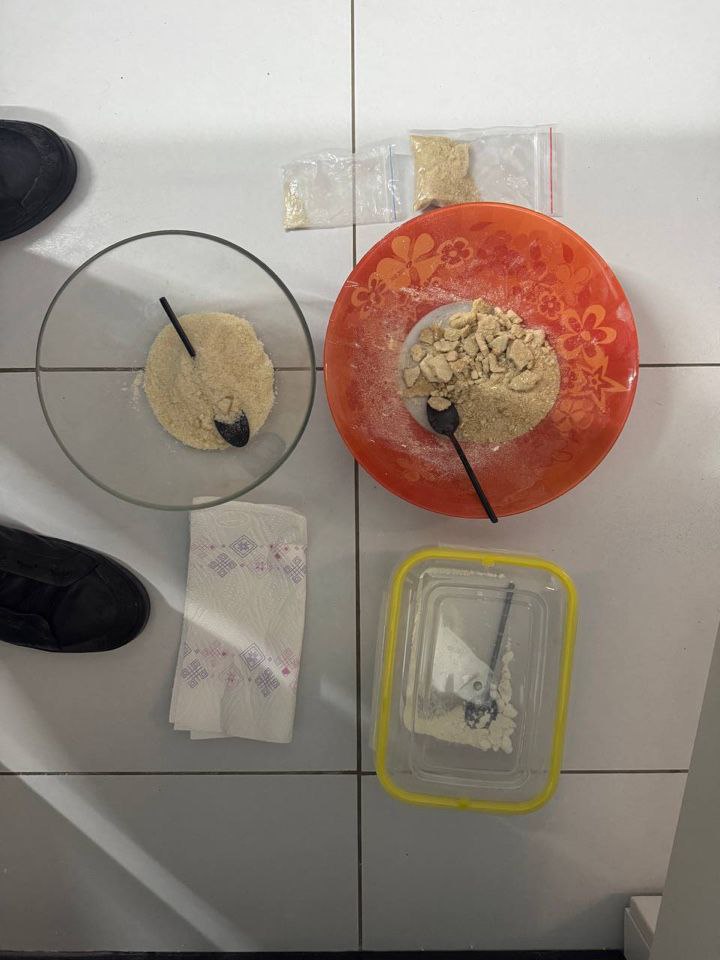 При осмотре арендованной квартиры, в которой проживали наркосбытчики, оперативники обнаружили ещё более 80 свёртков и чашу с 270 граммами Nметилэфедрона, а также 140 граммов мефедрона и 12 граммов смеси амфетамина и кофеина. На допросе подельники признались, что приехали в Тамбов, чтобы заняться распространением наркотических веществ.