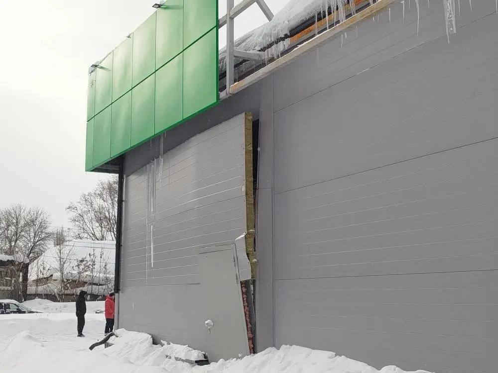 Сегодня, 08.02.2026, в крупном сетевом магазине на ул. Куйбышева г. Моршанска в дневное время произошла деформация кровли и стен здания.