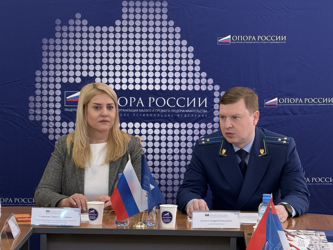 Сегодня на площадке Тамбовского регионального отделения «ОПОРА РОССИИ» состоялась встреча прокурора Тамбовской области Андрея Кулагина с представителями бизнеса региона, в которой также приняли участие Уполномоченный по защите прав предпринимателей Тамбовской области Екатерина Мовчан, представители общественных организаций и объединений.