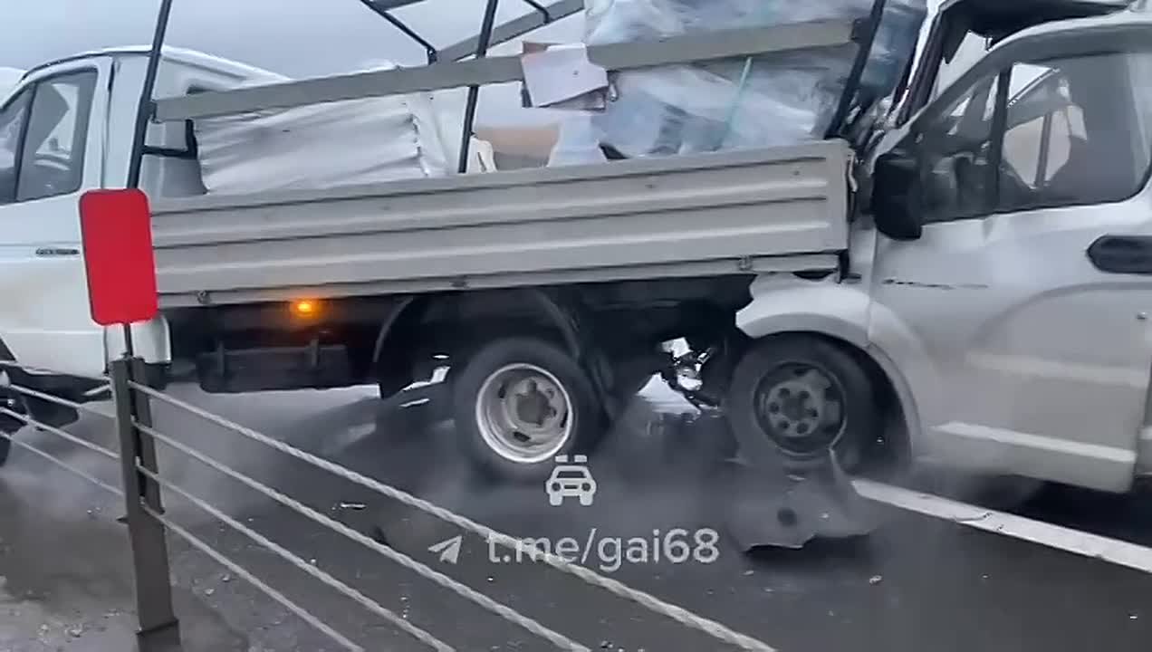 В этот момент по той же полосе двигалась другая «Газель». Ее водитель, по неизвестным причинам, не заметил стоявшую машину и допустил столкновение.