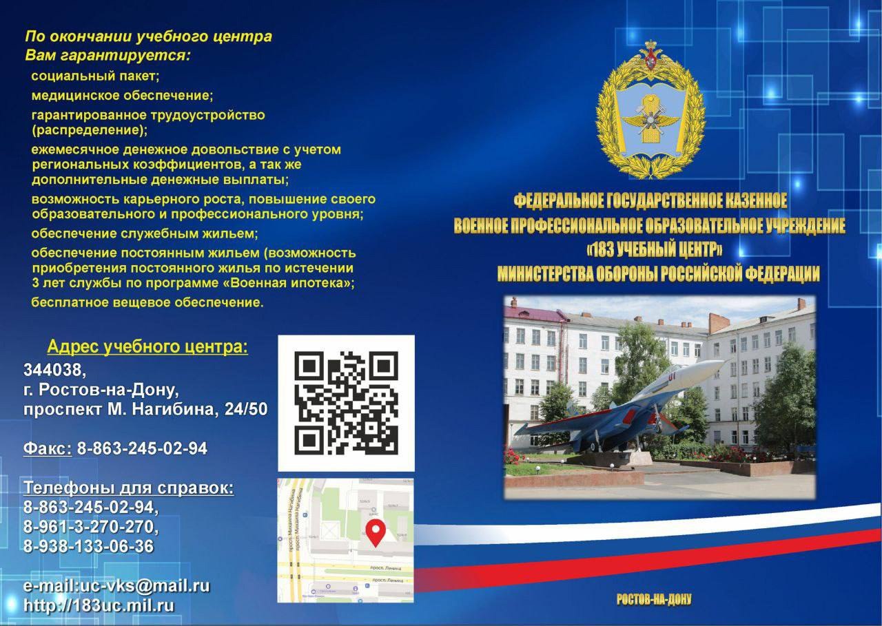 183 учебный центр Министерства обороны Российской Федерации приглашает получить среднее профессиональное военное образование.