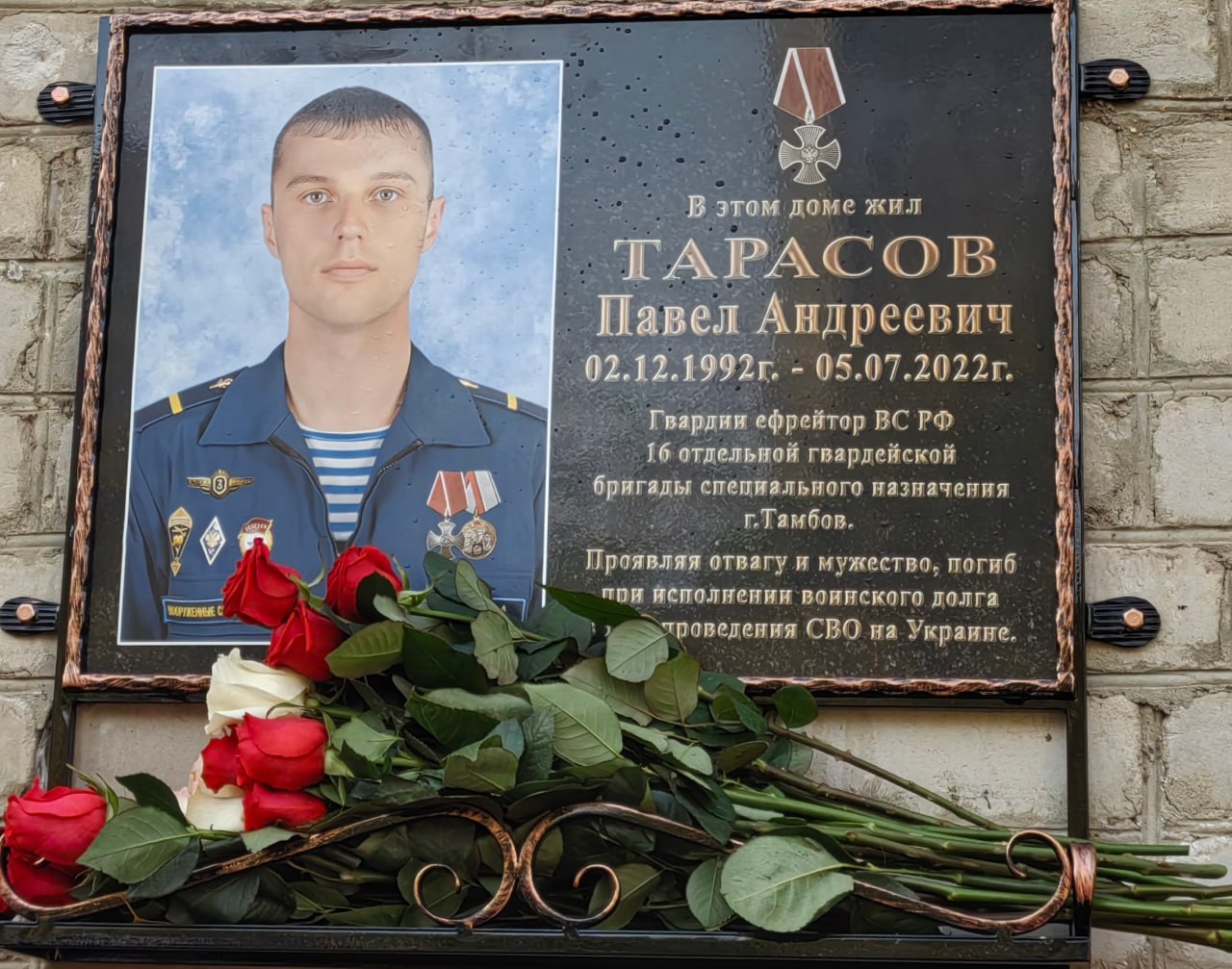 В Тамбове открыли мемориальную доску погибшему бойцу спецоперации Павлу Тарасову