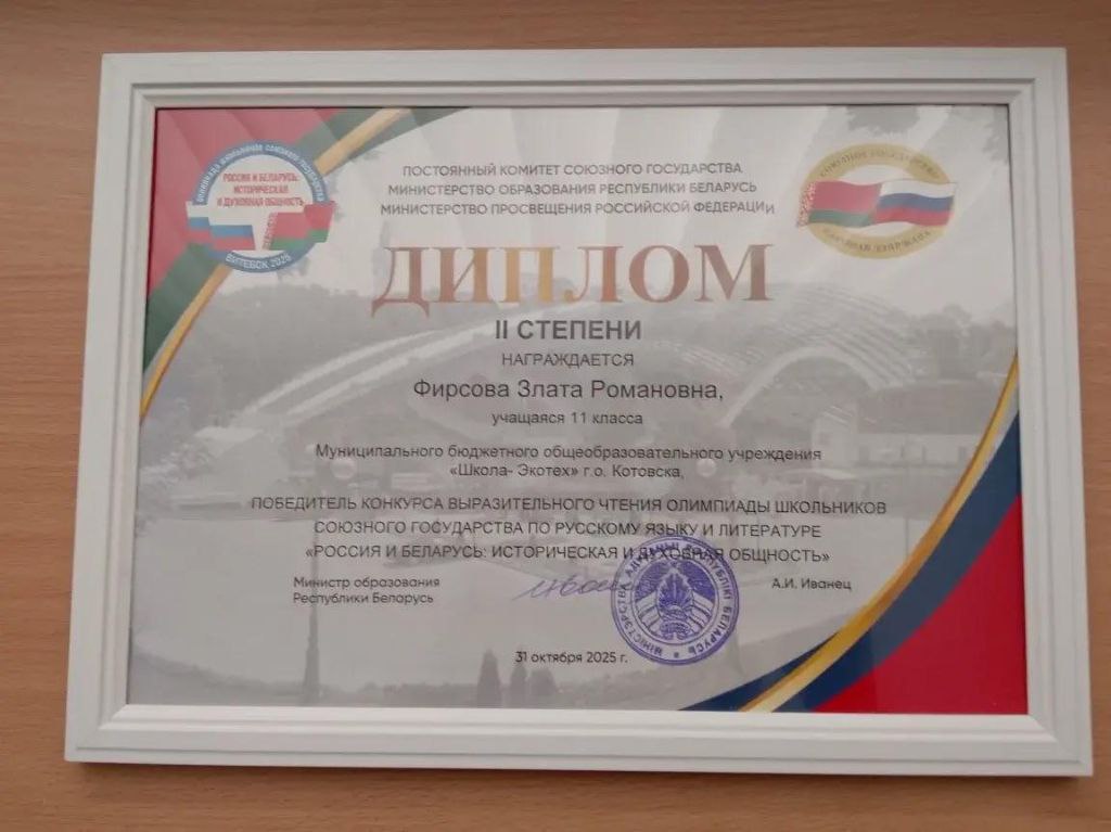 В конкурсе выразительного чтения второе место заняла ученица «Школы-ЭКОТЕХ» города Котовска Злата Фирсова.