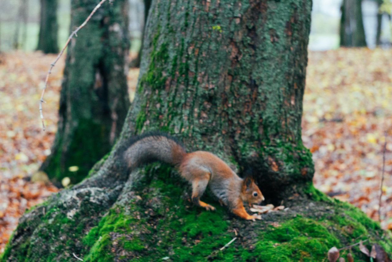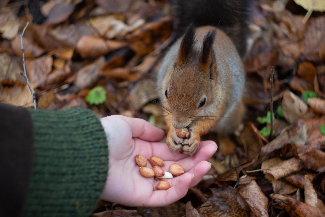 Шустрый обитатель Асеевского парка радуется угощениям гостей