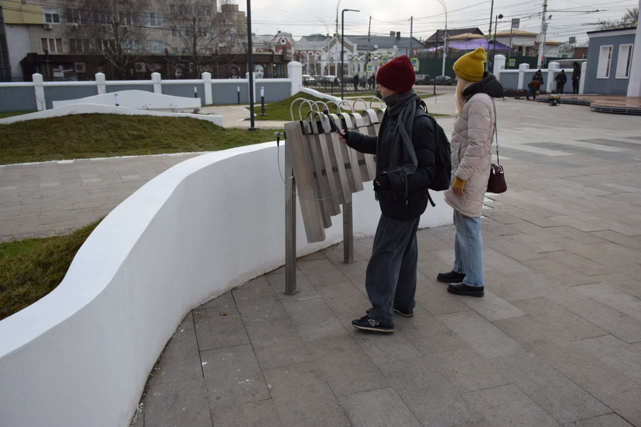 Также в новом сквере установили и специальные уличные музыкальные инструменты – большой ксилофон, тарелки и уличный оркестр. На каждом можно поиграть.