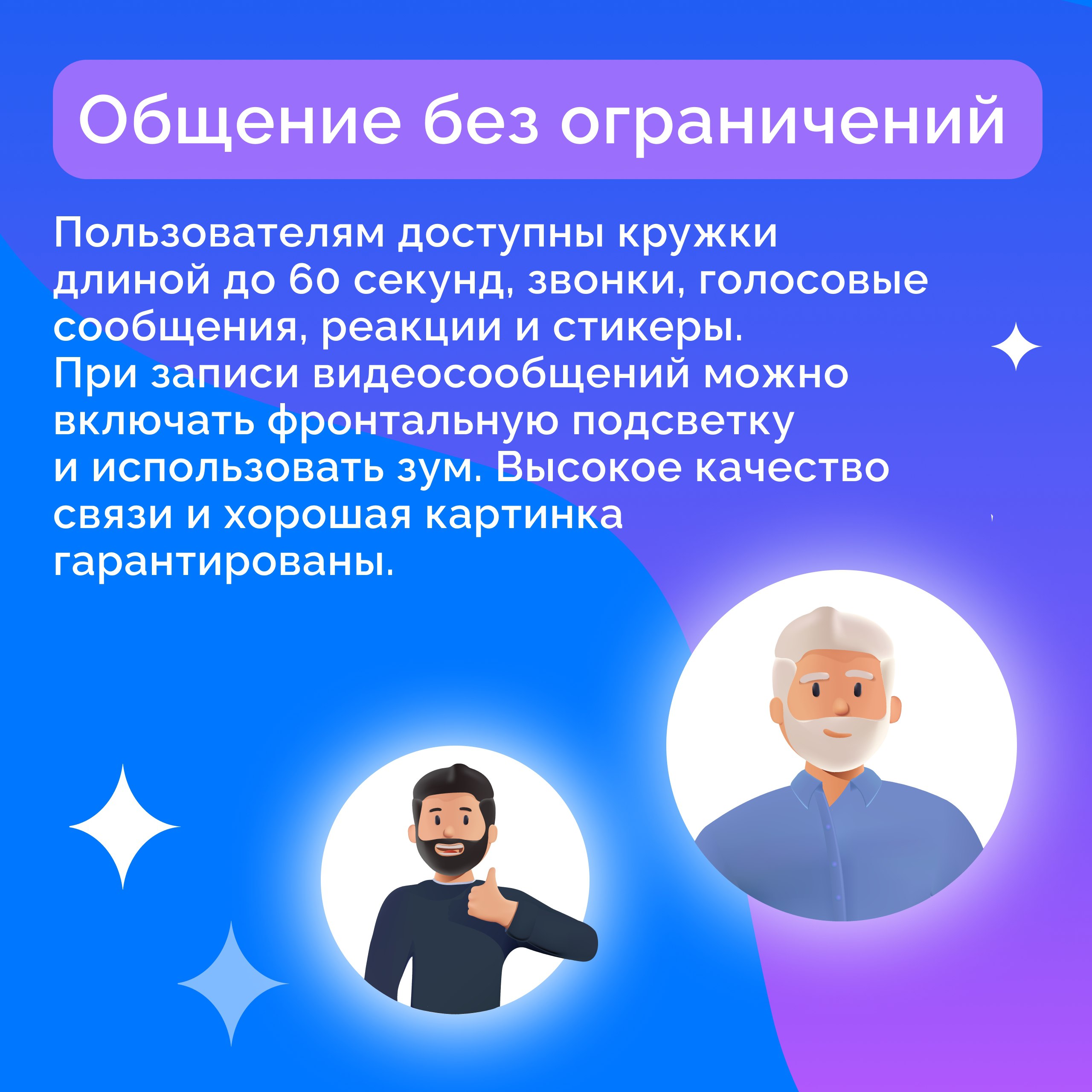 Мессенджер объединяет в себе не только привычные инструменты для общения, но и важные сервисы для работы с документами, видео и аудиофайлами. Пользователям доступны защищенные звонки, денежные переводы, мобильная подпись документов и многое другое.