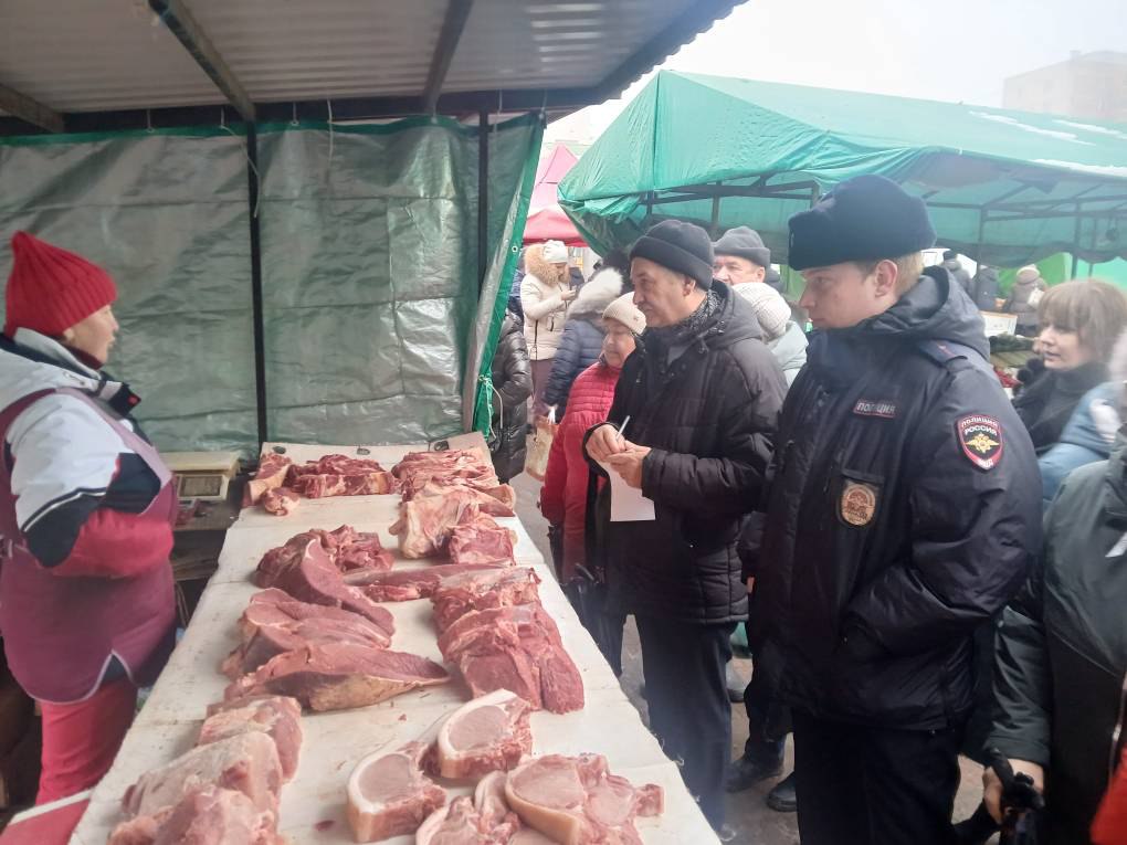 Межведомственная группа посетила ярмарку выходного дня на улице Мичуринская, 191, где традиционно собирается наибольшее число продавцов и покупателей.
