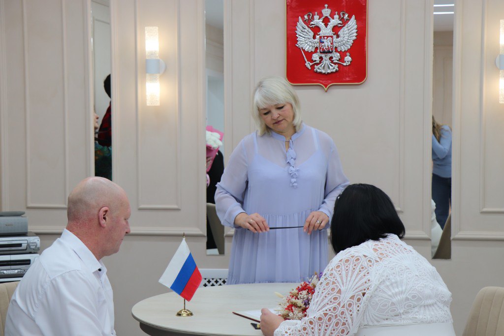 Первой парой, зарегистрировавшей брак в обновленном помещении,стали Татьяна и Александр Кирсановы.
