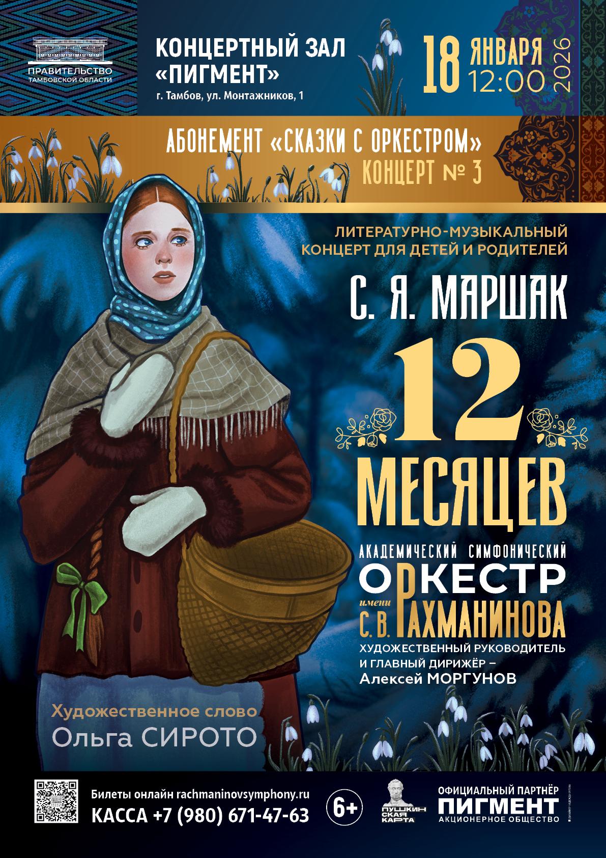 18 января 2026 года в концертном зале «Пигмент» состоится музыкально-литературный концерт «12 месяцев» (6+) для детей и родителей. Зрителям предлагают вместе открыть календарь нового года через музыку и знакомую сказку.