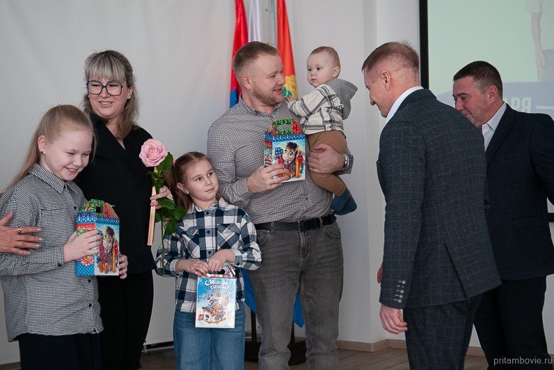 В Тамбовском округе 23 января отметили День многодетной семьи. Глава округа Константин Пудовкин и председатель Совета депутатов Тамбовского округа Александр Широков вручили сертификаты на улучшение жилищных условий четырём молодым семьям в рамках региональной программы «Обеспечение жильём молодых семей».