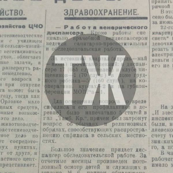 Санитарно-просветительскую работу среди селян активно ведут сотрудники вендиспансера. Они читают лекции, устраивают кинопоказы, параллельно проводя диагностику взрослых и детей. Из почти двухсот «семейных» треть оказались больны сифилисом. Среди детей шесть человек — носители сифилиса и гонореи. Суммарно за квартал у несовершеннолетних зафиксировано около 300 случаев сифилиса.