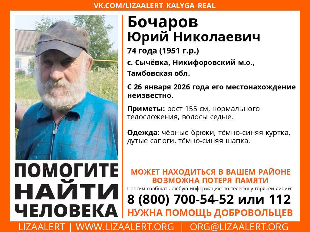 Пропал #Бочаров Юрий Николаевич, 74 года, с. #Сычёвка, #Никифоровс'кий р-н, #Тамбов'ская область.