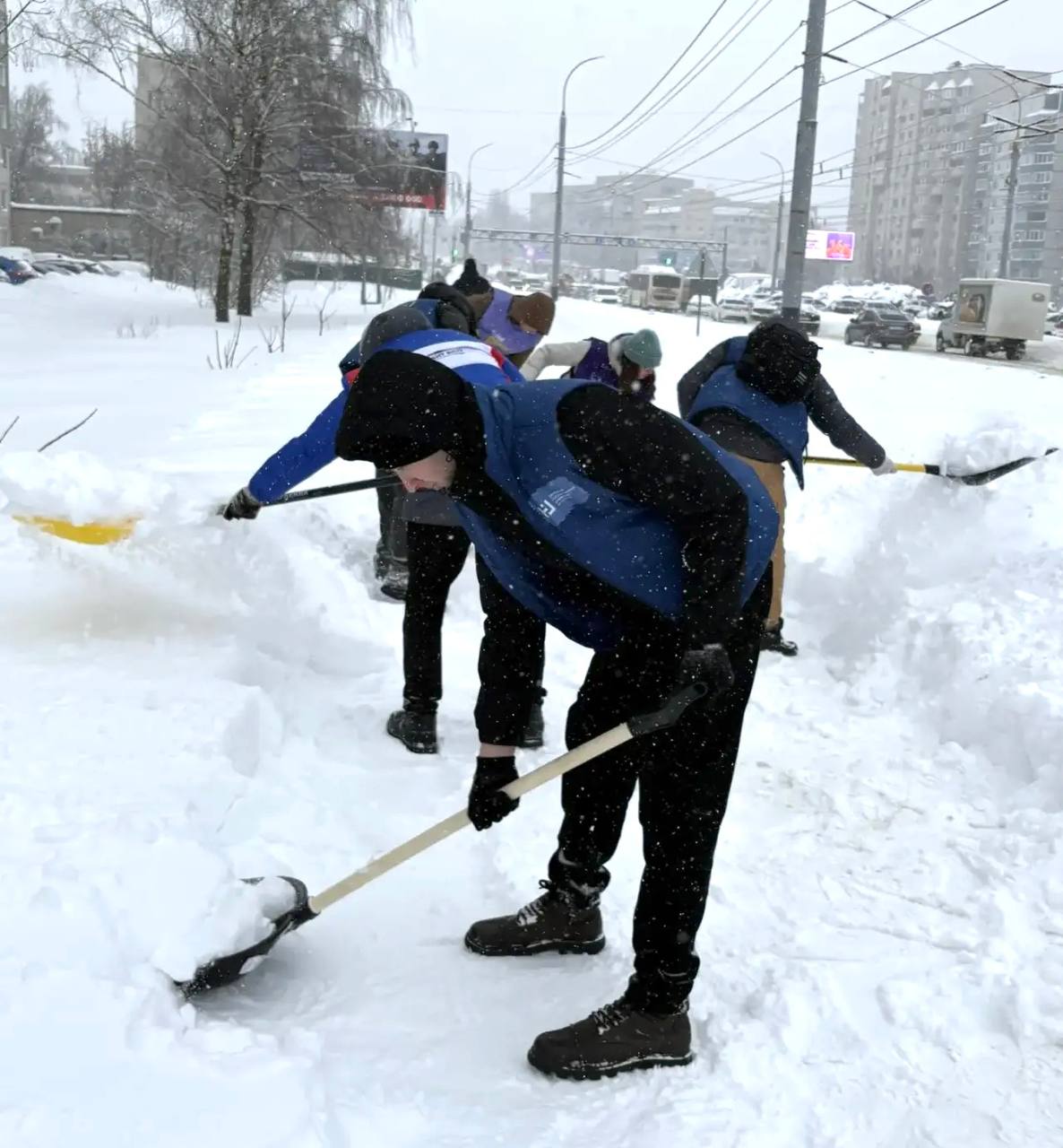 Студенты откликнулись на просьбу о помощи в уборке снега на улицах города. Особенно это касается тротуаров и мест остановок городского транспорта, где без ручного труда не обойтись в связи с ограниченной возможностью для проезда коммунальной техники.