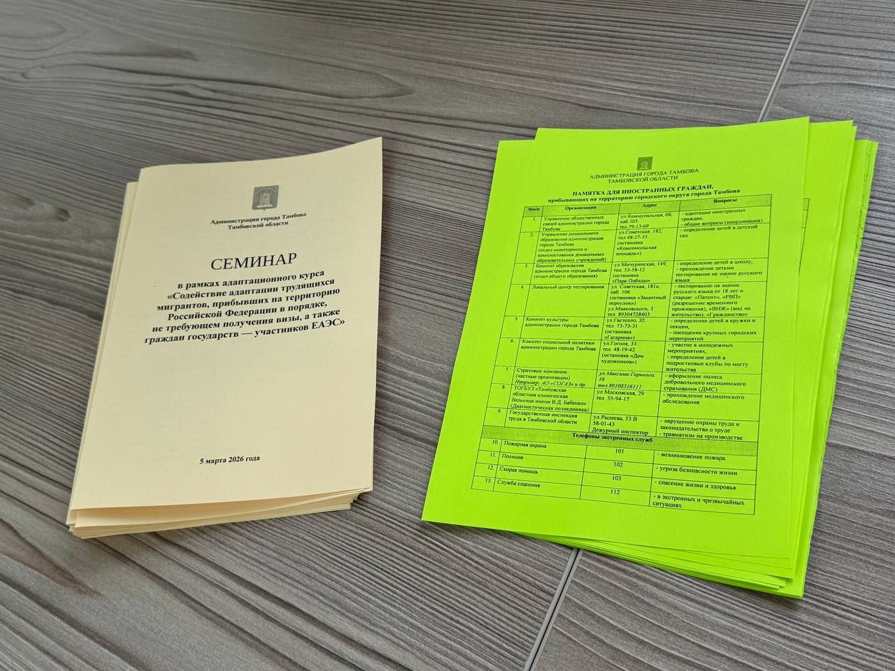 Такие мероприятия управлением общественных связей и информации города проводятся ежеквартально. В качестве спикеров выступают представители администрации города Тамбова, УМВД, Центра занятости населения, Тамбовского государственного университета им. Г.Р.Державина. Гражданам стран ближнего и дальнего зарубежья, которые приехали в нашу страну, разъясняются требования законодательства, нормы и правила поведения, трудовых отношений и культурной жизни в обществе.