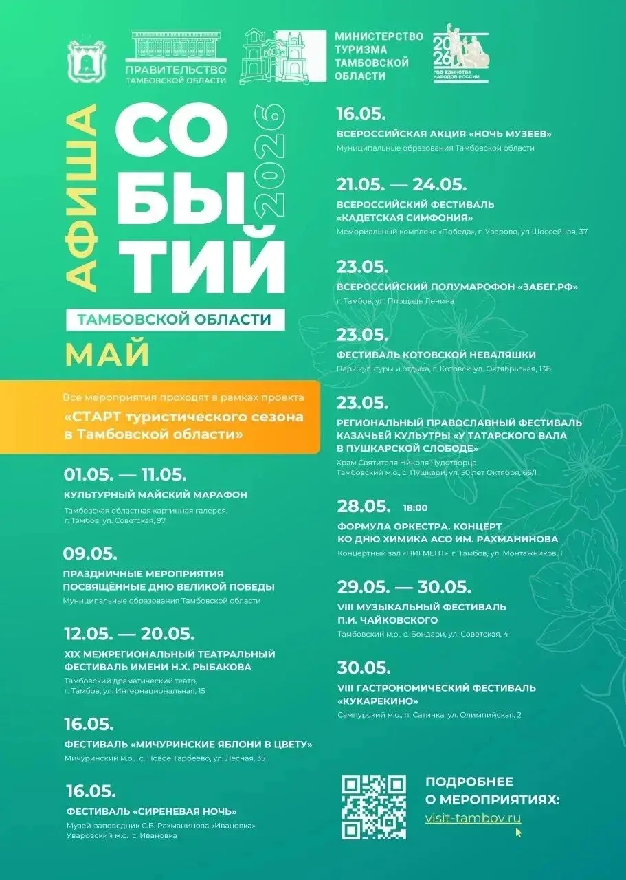 Министерство туризма Тамбовской области представило афишу событий на май (12+)