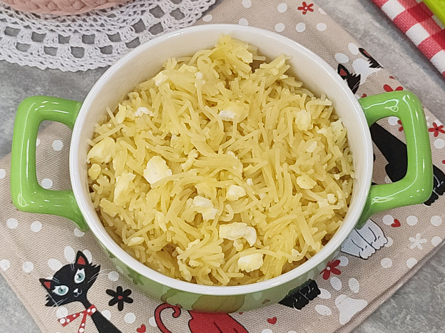 Теперь остается добавить одну чайную ложку сахара (или немного больше, если предпочитаете слаще) и тщательно перемешать. Обжаривайте смесь на огне в течение нескольких минут, пока вермишель не приобретет легкую золотистую корочку – это делает блюдо особенно аппетитным для детей.