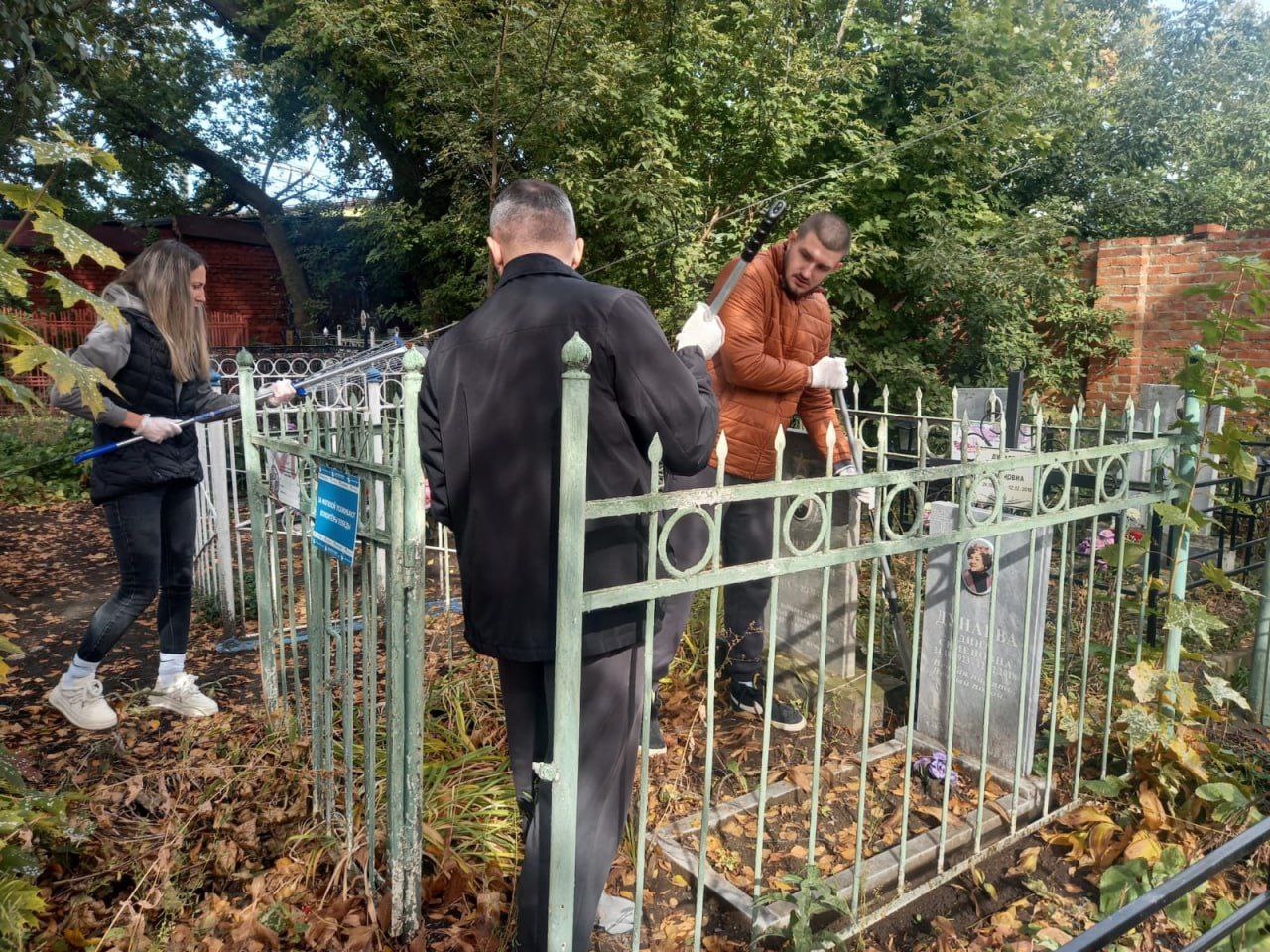 Члены волонтерских отрядов и добровольческих объединений, представители работающей молодежи собрались сегодня на Воздвиженском кладбище, чтобы дать старт акции. Ребята будут работать по графику, выезжая на кладбища города, где приведут в порядок воинские захоронения. Всего предстоит привести в порядок около 150 мест: убрать листву, очистить памятные доски и обелиски, вырубить дикую поросль.
