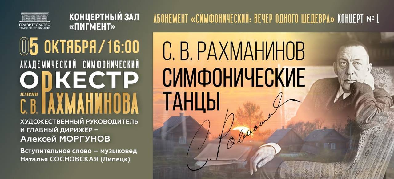 5 октября в концертном зале завода «Пигмент» состоится первый концерт в рамках абонемента «Симфонический: Вечер одного шедевра». Он будет посвящённый последнему оркестровому произведению Сергея Рахманинова - «Симфоническим танцам». Начало в 16 часов.