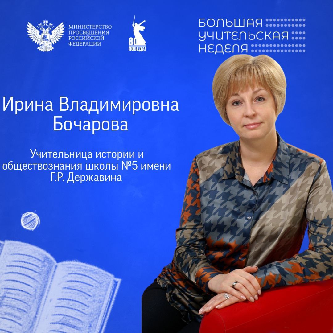 Бочарова Ирина Владимировна, учитель истории и обществознания школы № 5 имени Ю. А. Гагарина города Тамбова;