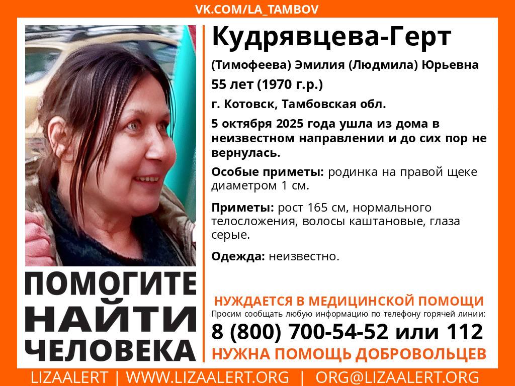 Пропала #Кудрявцева-Герт (Тимофеева) Эмилия (Людмила) Юрьевна, 55 лет, г. #Котовск, #Тамбов’ская обл.