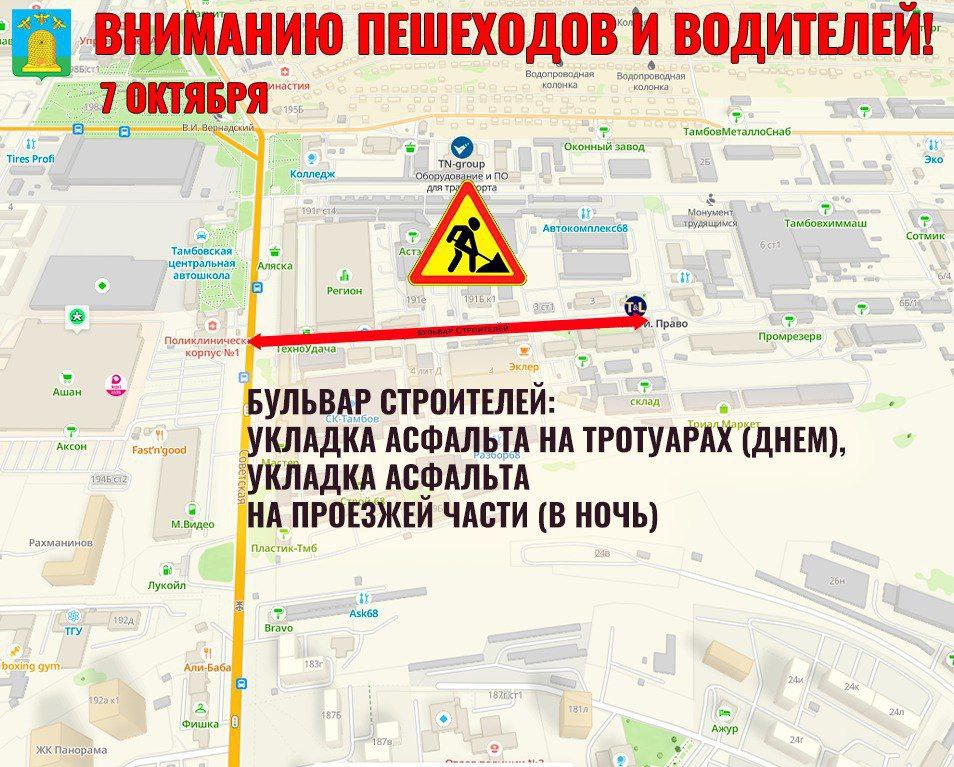 Сводка дорожных работ в Тамбове от администрации города.