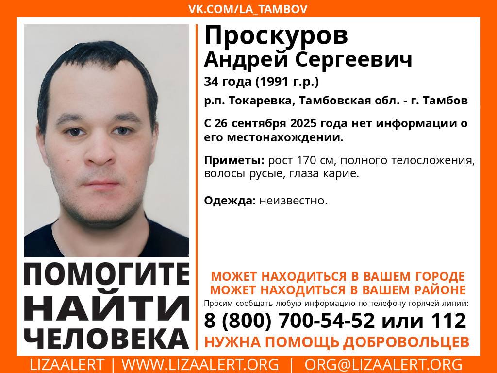 Пропал #Проскуров Андрей Сергеевич, 34 года, р.п. #Токаревка, #Тамбов’ская обл.