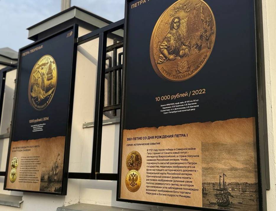 На представленных полотнах можно детально рассмотреть увеличенные изображения монет и узнать истории, которые вдохновляли медальерных мастеров. Их искусство запечатлело великие события эпохи Петра I: создание российского флота, военные победы, строительство городов, а также денежную и образовательную реформы 18 века.