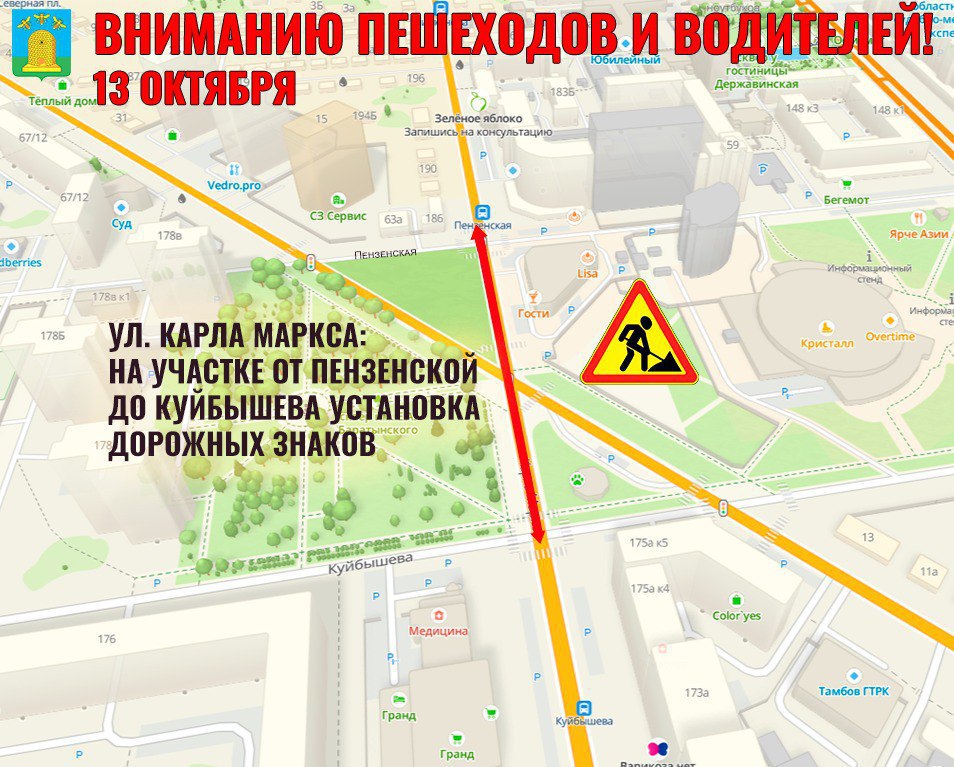 На участке Карла Маркса, от Пензенской до Куйбышева запланирована установка дорожных знаков.