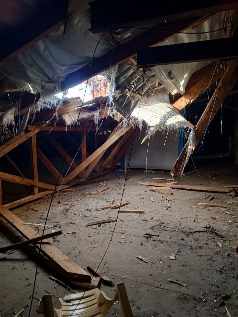 "В Каховке удар дронами повредил фасад и кровлю Дома культуры "Мелиоратор". В Каланчаке вследствие прилёта БПЛА загорелся топливный резервуар на АЗС. Пожар потушен, пострадавших нет", — написал он.