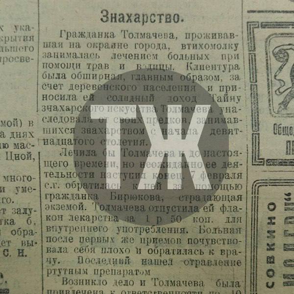 Гражданка Толмачева занималась знахарством, что приносило ей солидный доход. Но однажды к ней обратилась гражданка Бирюкова, и Толмачева продала ей флакон лекарства, из-за употребления которого женщине стало плохо. Врач диагностировал отравление ртутным препаратом, и Толмачеву приговорили к 6 месяцам лишения свободы.