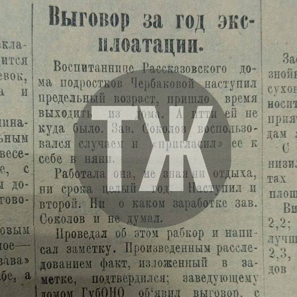 Девушке пришла пора выходить из Рассказовского дома подростков по достижению возраста, но идти ей было некуда. Заведующий Соколов решил воспользоваться ситуацией и пригласил девушку работать к себе няней, однако платить ей за труды не собирался. Спустя год об этом случае написали заметку, и после расследования Соколову объявили выговор с предупреждением.