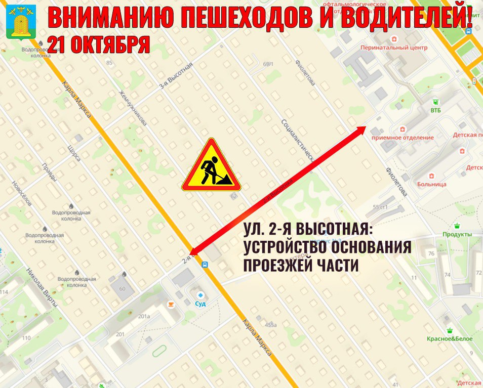 На сегодня запланировано:Карла Маркса- установка опор под знакиМичуринская- устройство пешеходных и технических тротуаров2-я Высотная- устройство основания проезжей части
