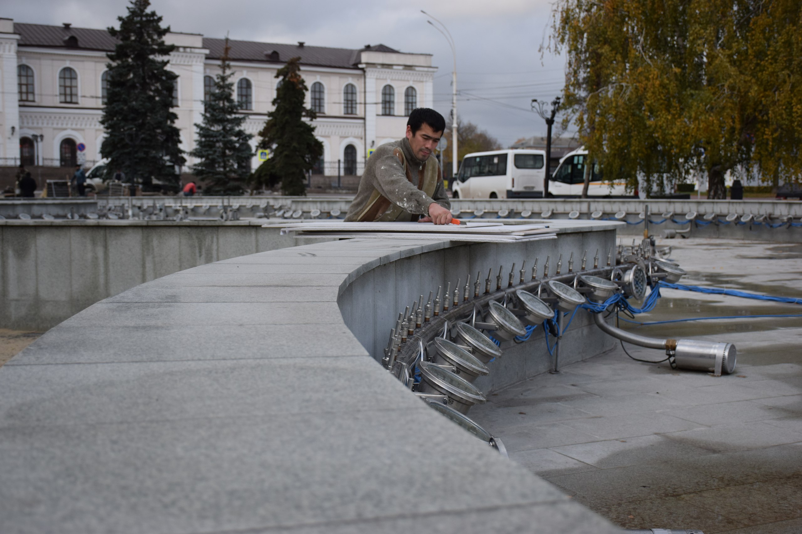 Работы по благоустройству территории у фонтана на Привокзальной площади близятся к завершению. Они проводятся в рамках второго контракта. Первый предусматривал полную реконструкцию самого фонтана: летом была произведена замена всех инженерных коммуникаций, выполнена отделка чаш гранитной плиткой, установлена современная система управления.