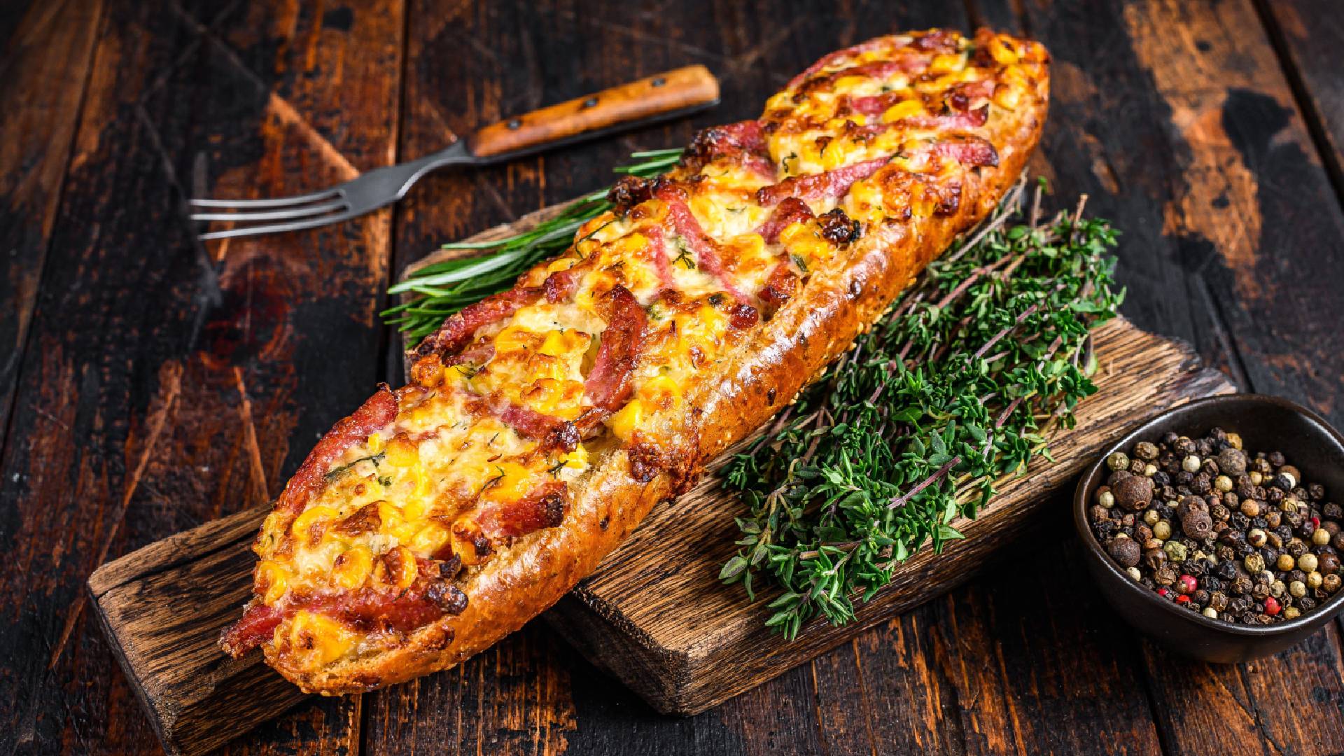 На багете сделайте продольные надрезы, не доходя до дна полсантиметра. Ложкой заложите начинку в прорези. Отправляйте хлеб запекаться в духовку на 10-15 минут при 180 градусах. За это время подрумянится корочка и расплавится сыр, рекомендует Пульс-канал «Сладкая жизнь».