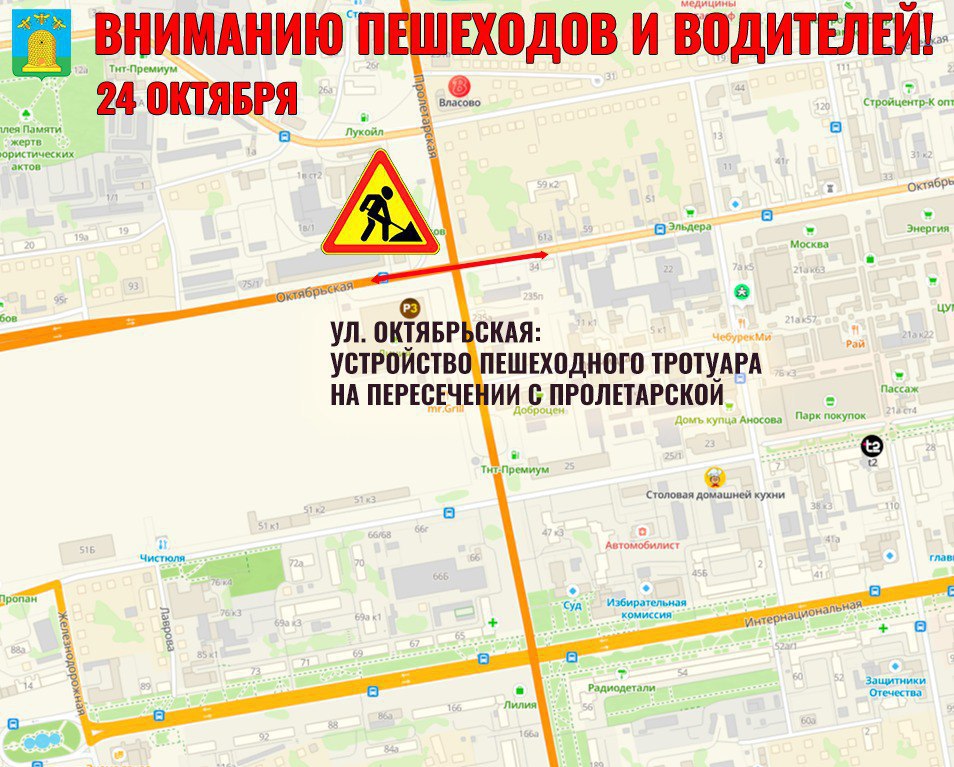 - устройство пешеходного тротуара на пересечении с Пролетарской