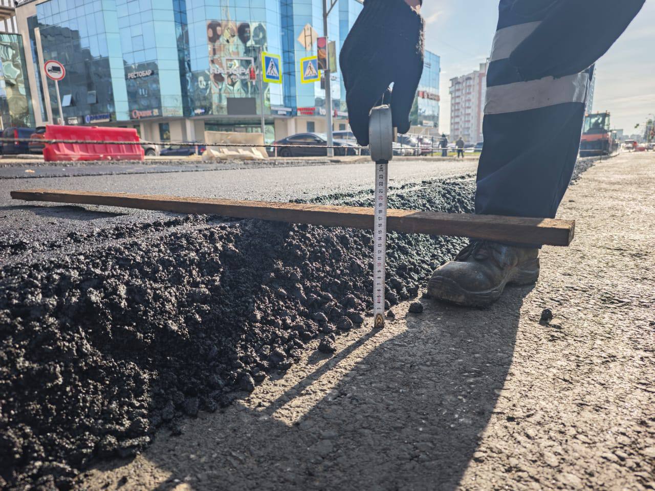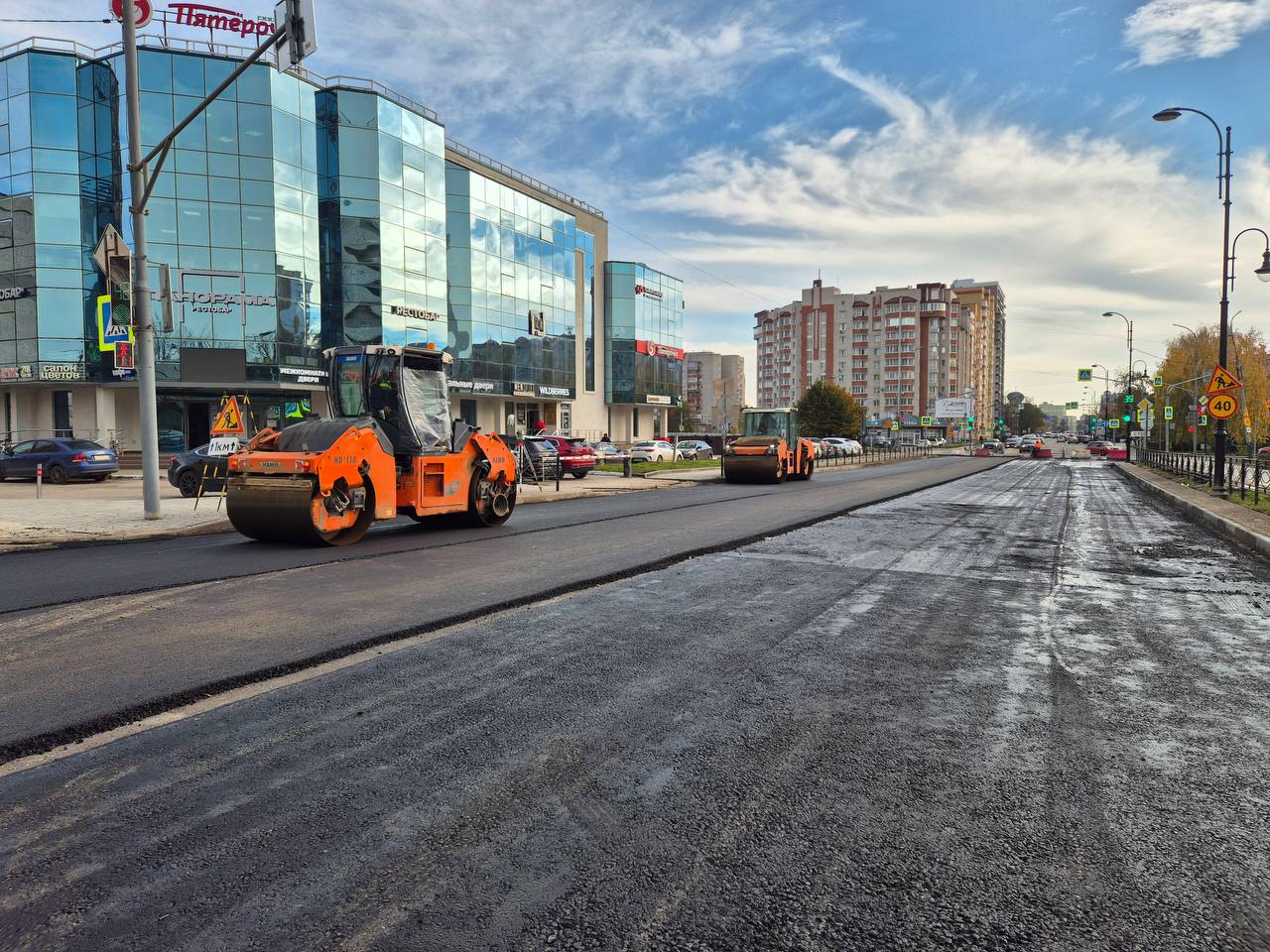 Сегодня подрядчик уложил выравнивающий слой дорожного полотна. Завтра, если погода не подведет, планируется укладка финишного слоя асфальта — завершающая стадия ремонта.
