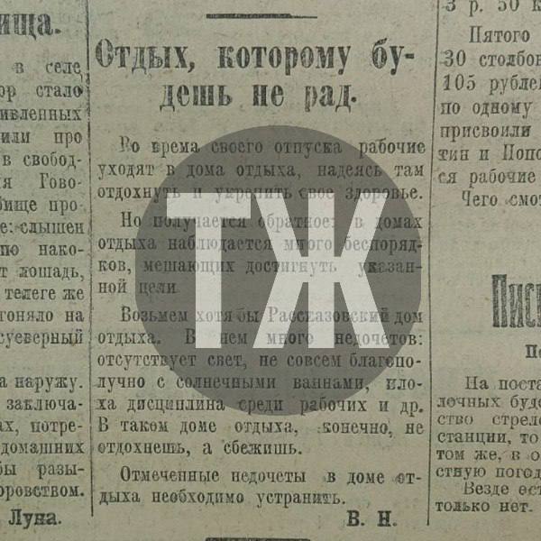 Нередко рабочие отправляются в отпуск в дома отдыха, надеясь укрепить здоровье. Однако зачастую результат оказывается обратным. Например, в Рассказовском доме отдыха наблюдаются перебои с электроснабжением, неудовлетворительные условия для принятия солнечных ванн и слабая трудовая дисциплина среди персонала.