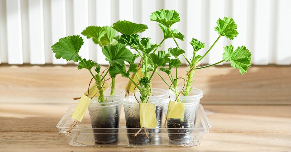 - Укоренение в воде: идеально подойдет для простых в уходе зональных пеларгоний. Важно следить за чистотой воды и обновлять её.