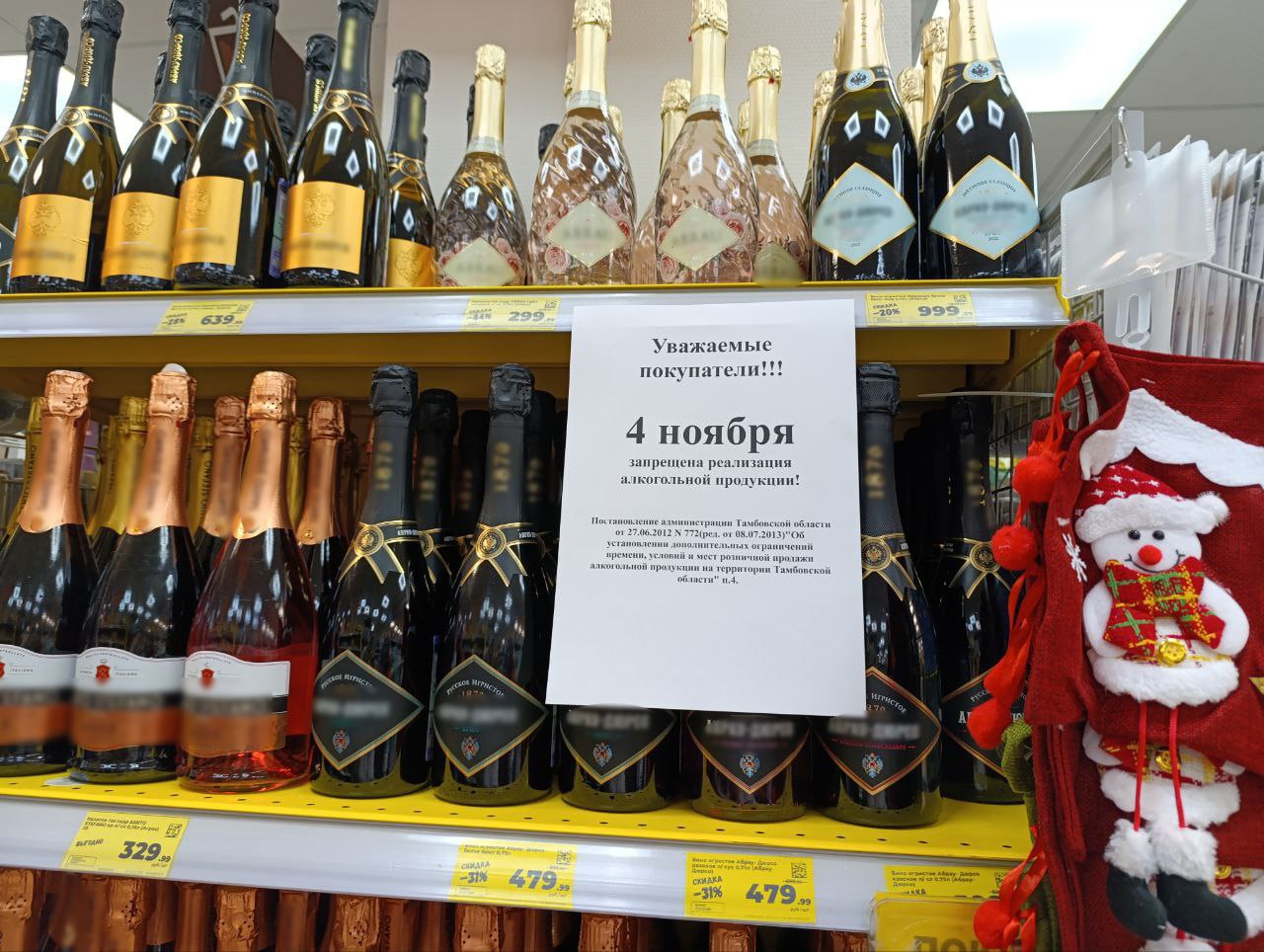 В Тамбовской области 4 ноября не будут продавать алкоголь